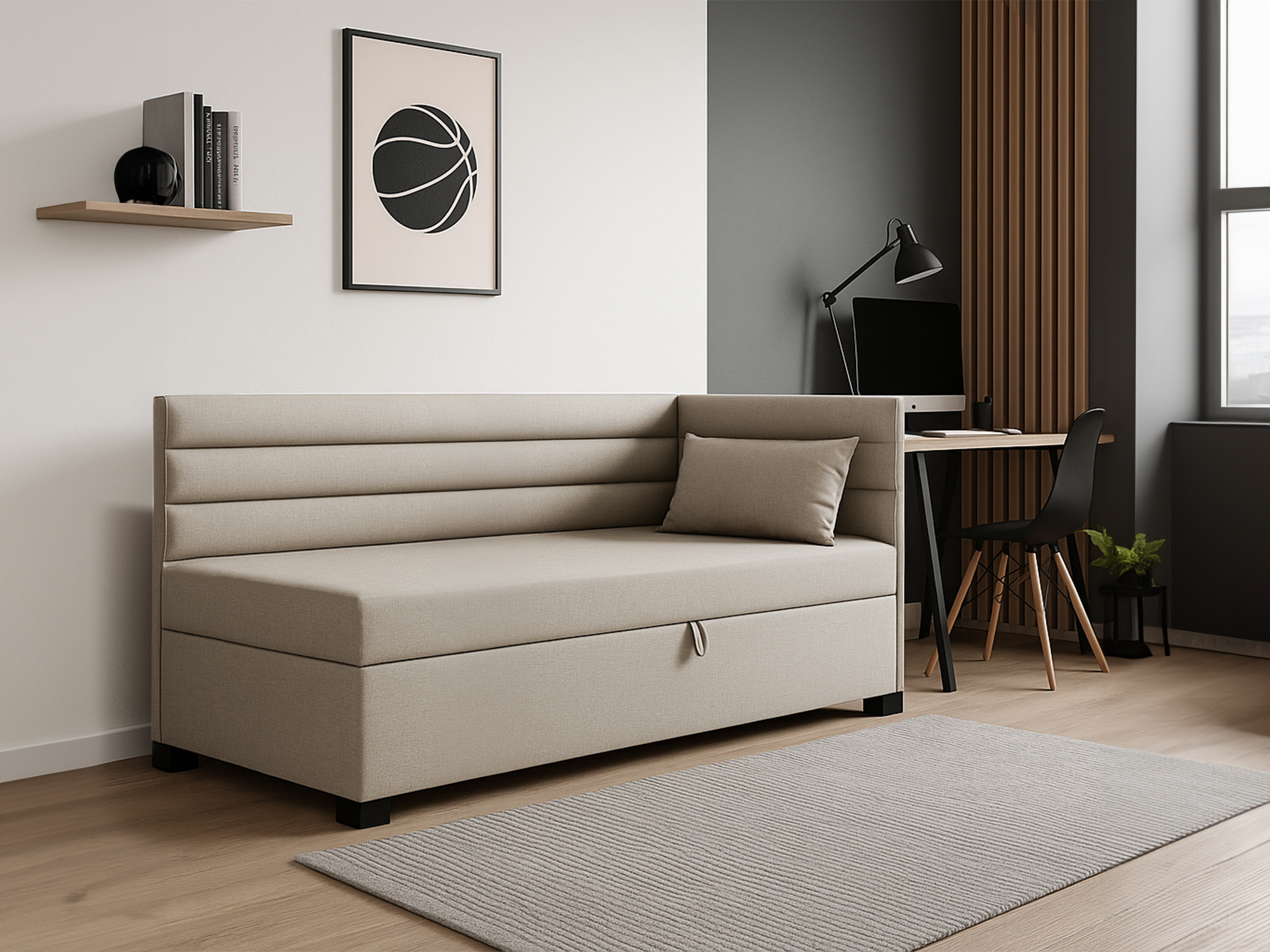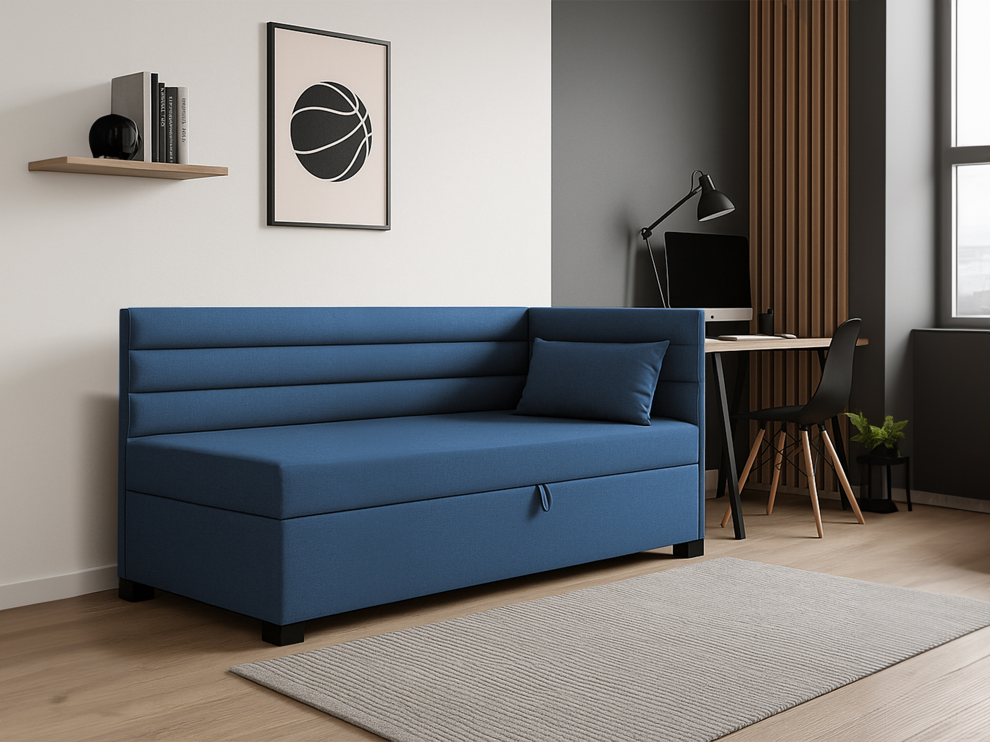 Łóżko Nela to rozwiązanie idealne do pokoju dziecięcego jak i młodzieżowego. Dzięki swej budowie mebel jest niezwykle praktyczny. Posiada wbudowany materac. Łóżko wyposażone zostało jedną skrzynie otwieraną od boku dla uzyskania dodatkowej przestrzeni do przechowywania. Dzięki bogatej palecie tkanin i barw, łóżko wpasuje się w każdy styl pomieszczenia.