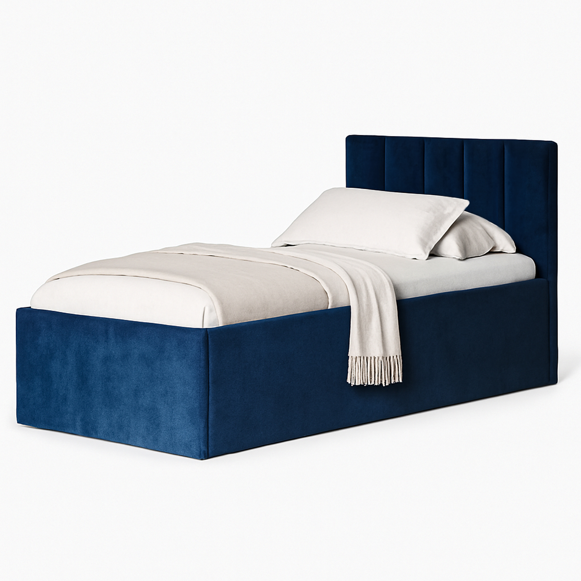 Wezgłowie tapicerowane (opcja dodatkowa): Eleganckie, miękkie oparcie wykonane z pianki i przeszyte w pionowe pasy – nadaje wnętrzu charakteru i wygody. Ilość oraz szerokość pasów na wezgłowiu zależna od rozmiaru łóżka.