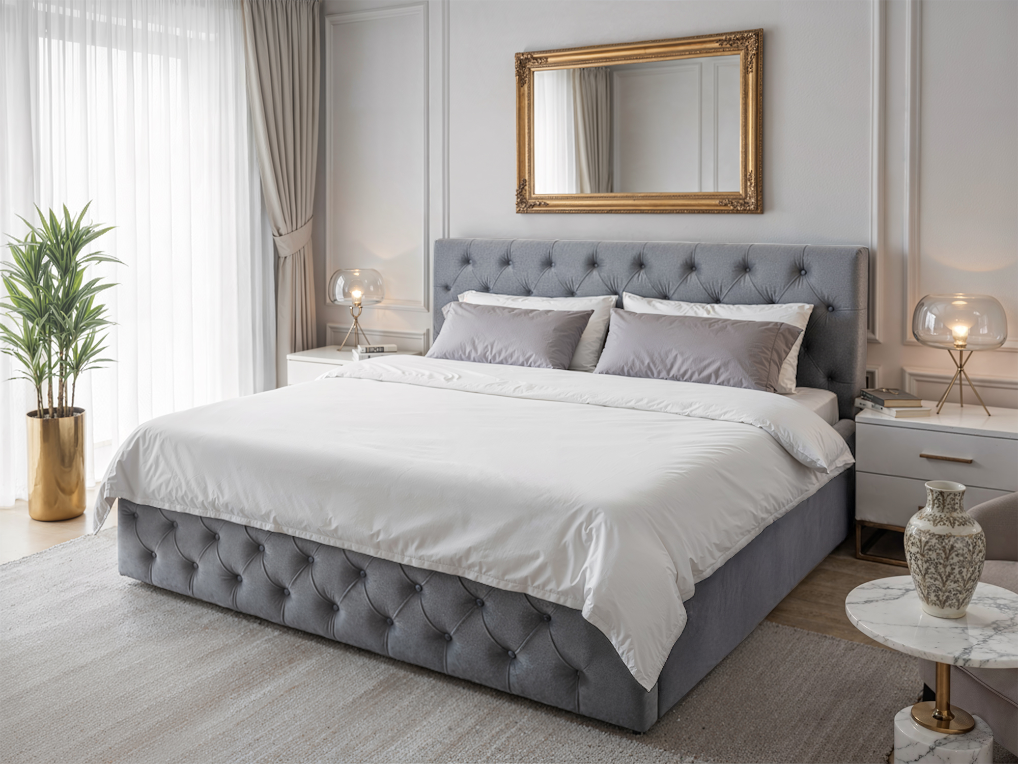 Szukasz idealnego połączenia elegancji, wygody i trwałości? Łóżko tapicerowane Madryt to wyjątkowy model, który wprowadzi do Twojej sypialni atmosferę luksusu i relaksu. Jego stylowe wezgłowie oraz przód łóżka zdobione głębokimi pikami nadają wnętrzu niepowtarzalny charakter, a jednocześnie zapewniają wygodne oparcie podczas wieczornego czytania lub oglądania telewizji.