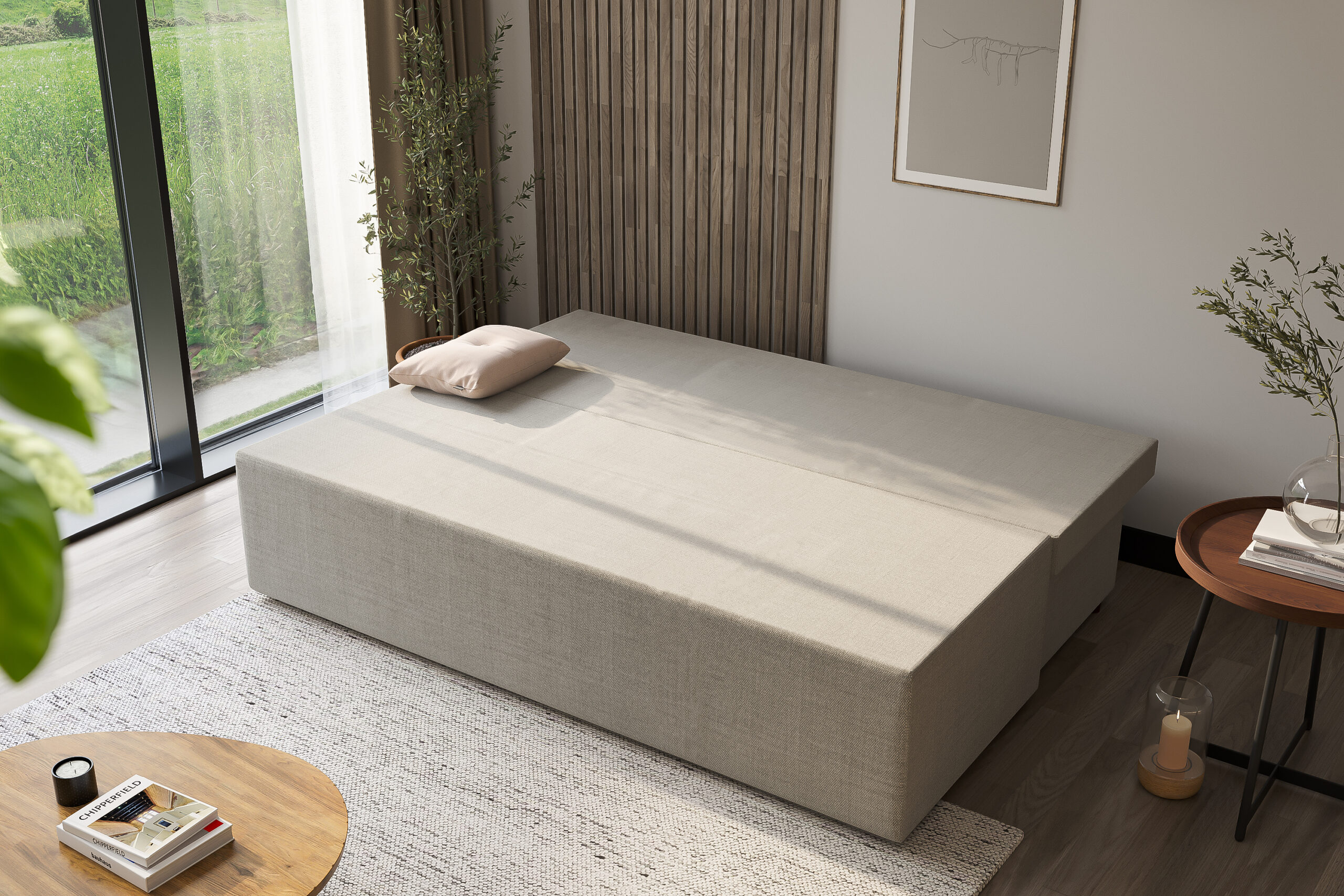 - Sofa posiada pojemnik, dzięki któremu zyskasz dodatkową przestrzeń do przechowywania oraz system rolkowy.