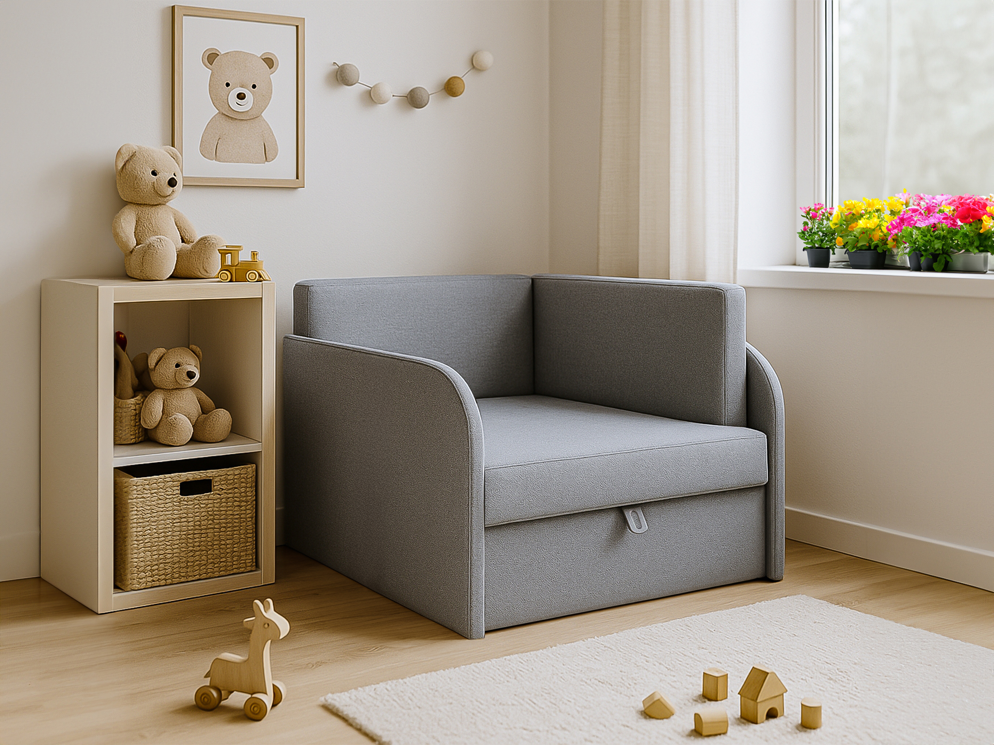 ✔ Pojemna szuflada – umieszczona z boku łóżka, świetna na pościel, zabawki czy ubrania.