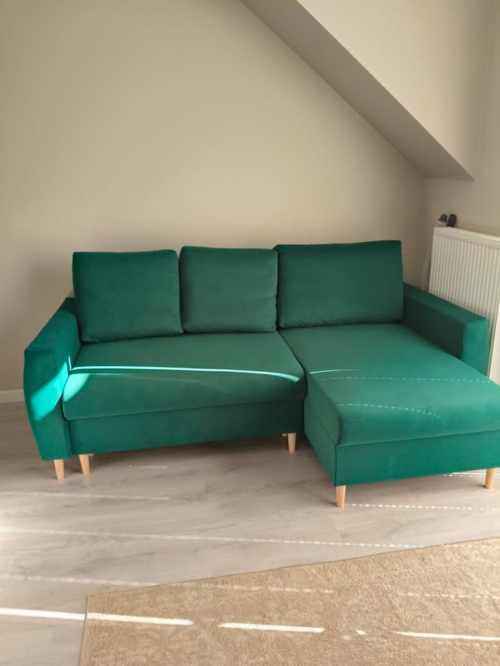 Elegancki i praktyczny narożnik to idealne rozwiązanie do salonu, które łączy styl z wygodą. Dzięki kompaktowym wymiarom doskonale sprawdzi się zarówno w mniejszych, jak i większych pomieszczeniach. Komfort i jakość: Narożnik wyposażony jest w siedzisko wykonane z wysokogatunkowej pianki, które zapewnia wyjątkową wygodę i trwałość na lata. W zestawie znajdują się 3 wygodne poduszki, które nie tylko zwiększają komfort użytkowania, ale także pełnią funkcję dekoracyjną, nadając meblowi przytulny wygląd. Narożnik posiada pojemnik, dzięki któremu zyskasz dodatkową przestrzeń do przechowywania oraz system rolkowy. Cechy produktu: - Siedzisko: Pianka elastyczna o doskonałej sprężystości, zapewniająca komfort i ergonomiczne podparcie. - Poduszki: W zestawie 3 poduszki oparciowe, które można dowolnie układać dla jeszcze większej wygody. - Design: Nowoczesny styl pasujący do różnych aranżacji wnętrz – od minimalistycznych po bardziej klasyczne. - Strona narożnika: Możliwość wyboru lewej lub prawej strony (w zależności od aranżacji wnętrza). Wymiary: - Szerokość całkowita: 220 cm - Głębokość całkowita: 146 cm - Głębokość siedziska bez poduszek: 87 cm - Wysokość siedziska: 40 cm - Powierzchnia spania: 140x200cm - Wymiary mogą różnić się +/- 2 cm - Istnieje możliwość zmiany wymiarów pod Państwa potrzeby Wygląd narożnika po rozłożeniu zależny jest od modelu oraz wymiaru mebla. Dodatkowe opcje (dostępne po kontakcie ze sprzedawcą) - Sprężyny bonellowe - Poduszki ozdobne 40x40cm - Automat DL ułatwiający rozkładanie Jeśli szukasz funkcjonalnego mebla, który zapewni komfort, trwałość i nowoczesny wygląd – ten narożnik spełni Twoje oczekiwania! Idealny zarówno do codziennego użytku, jak i do relaksu w gronie najbliższych.