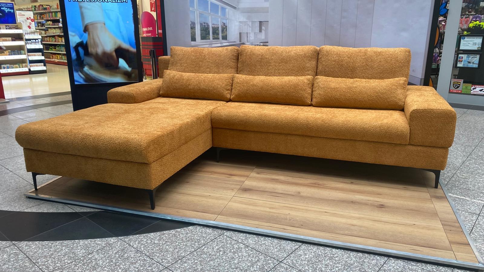 Nowoczesny narożnik Caligari na wysokich nóżkach – styl i wygoda w Twoim wnętrzu Wprowadź do swojego salonu elegancję i komfort dzięki naszemu nowoczesnemu narożnikowi na wysokich nóżkach. Ten wyjątkowy mebel został stworzony z myślą o miłośnikach minimalistycznego designu i praktycznych rozwiązań. Nasza propozycja wyróżnia się wygodnym siedziskiem, które zapewnia najwyższy komfort wypoczynku, oraz miękkimi poduszkami, idealnymi do relaksu po długim dniu. Bez funkcji spania, ale  z maksymalnym naciskiem na styl i wygodę – idealnie sprawdzi się jako centralny punkt każdego salonu. Dzięki bogatej palecie tkanin i kolorów, możesz dopasować narożnik do swojego wnętrza i osobistego gustu. Wybierz spośród różnych odcieni i faktur, tworząc aranżację idealnie komponującą się z Twoim stylem. Wysokie nóżki dodają lekkości konstrukcji, a także ułatwiają utrzymanie porządku pod meblem. Cechy produktu: - sprężyna bonellowa - pianka T-30 - mebel wolnostojący (tapicerowany tył) - do wyboru strona lewa lub prawa - zestaw zawiera duże poduszki oparciowe, ilość oraz wielkość zależna od wymiaru mebla - metalowe nóżki bądź drewniane Przedstawiona aukcja zawiera narożnik bez funkcji spania i bez pojemnika. Jest możliwość wykonania narożnika z funkcją spania. W tym celu prosimy o kontakt ze sprzedawcą, telefoniczny bądź mailowy. Wymiary: